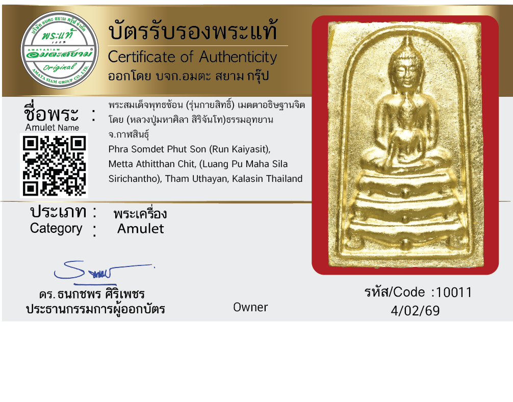 พระสมเด็จพุทธซ้อน (รุ่นกายสิทธิ์) เมตตาอธิษฐานจิต โดย (หลวงปู่มหาศิลา สิริจันโท) ธรรมอุทยาน จ.กาฬสินธุ์