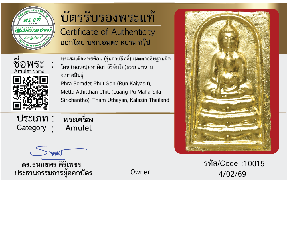 พระสมเด็จพุทธซ้อน (รุ่นกายสิทธิ์) เมตตาอธิษฐานจิต โดย (หลวงปู่มหาศิลา สิริจันโท) ธรรมอุทยาน จ.กาฬสินธุ์
