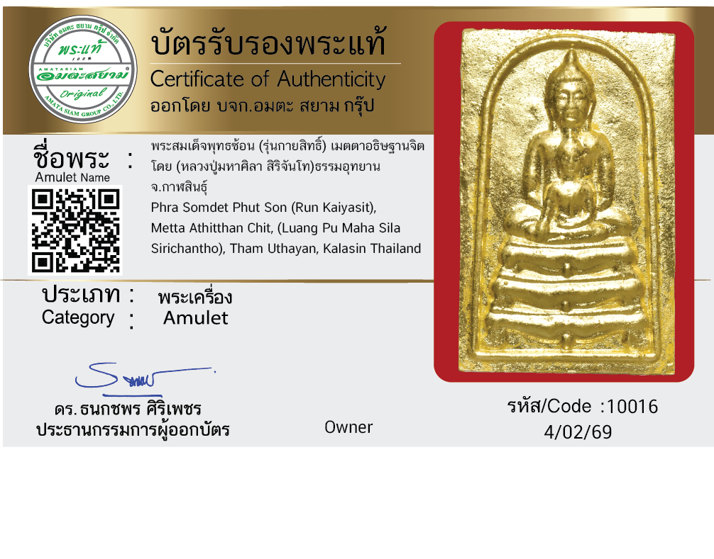 พระสมเด็จพุทธซ้อน (รุ่นกายสิทธิ์) เมตตาอธิษฐานจิต โดย (หลวงปู่มหาศิลา สิริจันโท) ธรรมอุทยาน จ.กาฬสินธุ์