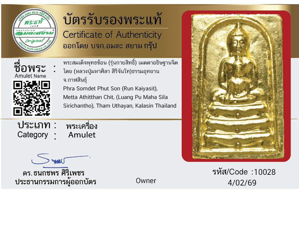 พระสมเด็จพุทธซ้อน (รุ่นกายสิทธิ์) เมตตาอธิษฐานจิต โดย (หลวงปู่มหาศิลา สิริจันโท) ธรรมอุทยาน จ.กาฬสินธุ์