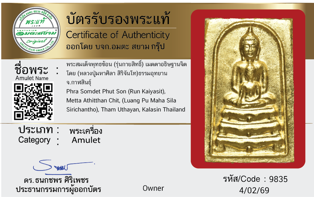 พระสมเด็จพุทธซ้อน (รุ่นกายสิทธิ์) เมตตาอธิษฐานจิต โดย (หลวงปู่มหาศิลา สิริจันโท) ธรรมอุทยาน จ.กาฬสินธุ์