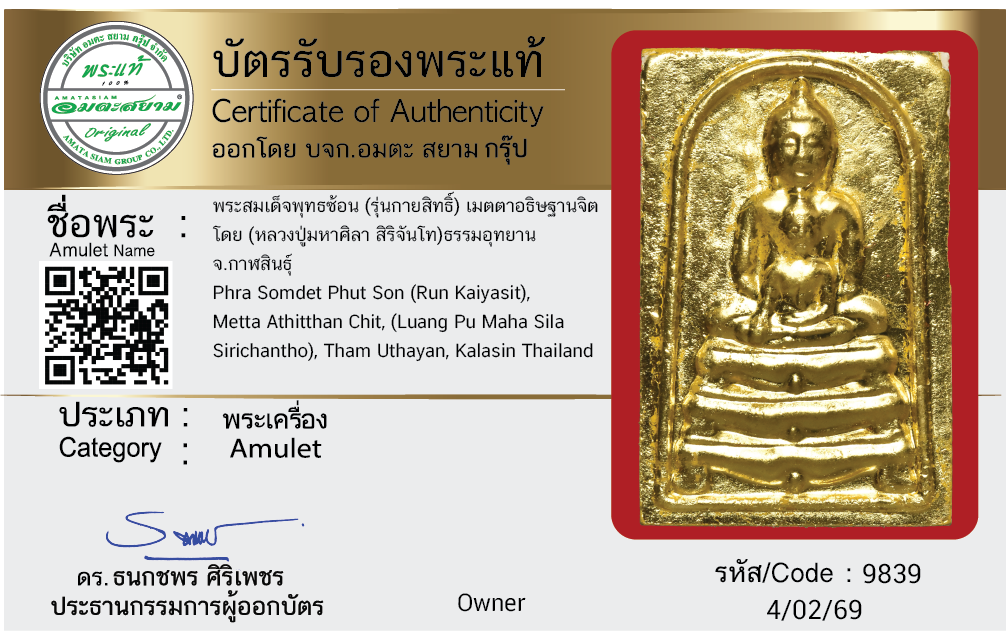 พระสมเด็จพุทธซ้อน (รุ่นกายสิทธิ์) เมตตาอธิษฐานจิต โดย (หลวงปู่มหาศิลา สิริจันโท) ธรรมอุทยาน จ.กาฬสินธุ์