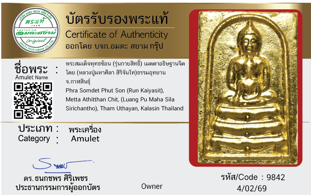 พระสมเด็จพุทธซ้อน (รุ่นกายสิทธิ์) เมตตาอธิษฐานจิต โดย (หลวงปู่มหาศิลา สิริจันโท) ธรรมอุทยาน จ.กาฬสินธุ์