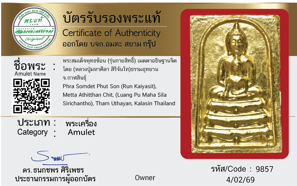 พระสมเด็จพุทธซ้อน (รุ่นกายสิทธิ์) เมตตาอธิษฐานจิต โดย (หลวงปู่มหาศิลา สิริจันโท) ธรรมอุทยาน จ.กาฬสินธุ์