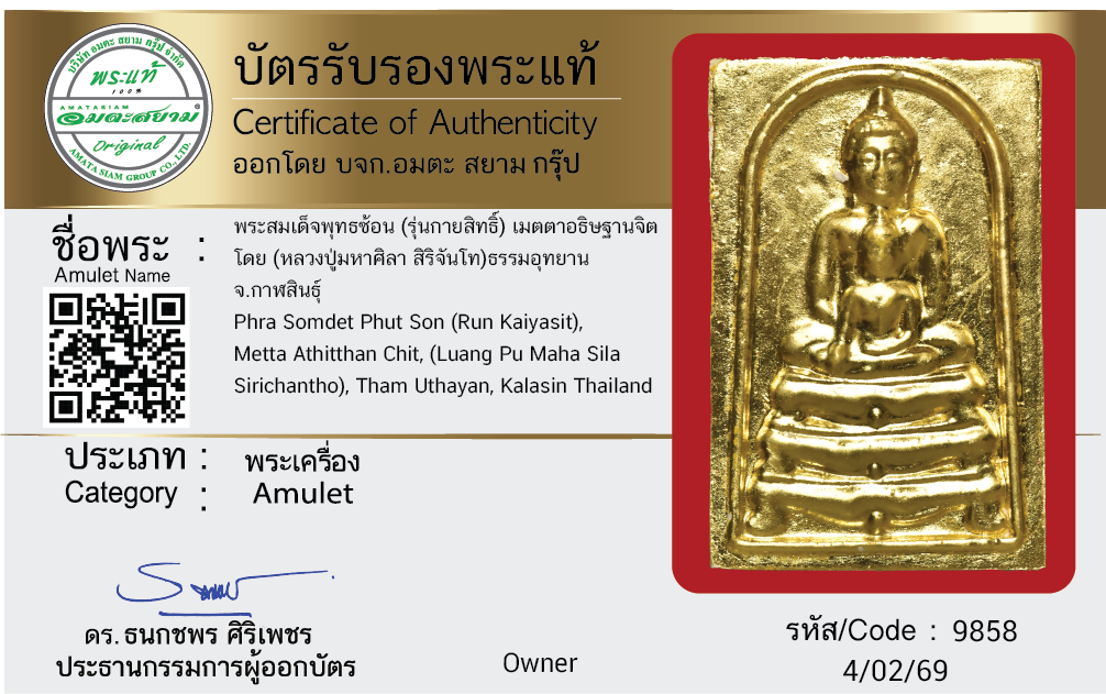 พระสมเด็จพุทธซ้อน (รุ่นกายสิทธิ์) เมตตาอธิษฐานจิต โดย (หลวงปู่มหาศิลา สิริจันโท) ธรรมอุทยาน จ.กาฬสินธุ์