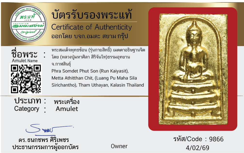 พระสมเด็จพุทธซ้อน (รุ่นกายสิทธิ์) เมตตาอธิษฐานจิต โดย (หลวงปู่มหาศิลา สิริจันโท) ธรรมอุทยาน จ.กาฬสินธุ์