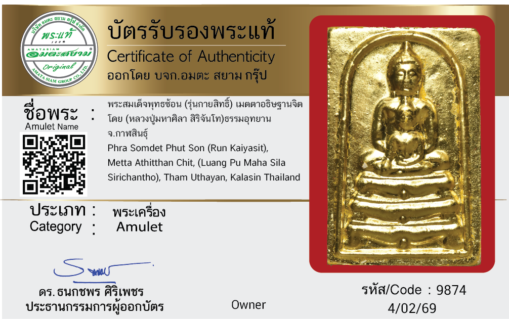 พระสมเด็จพุทธซ้อน (รุ่นกายสิทธิ์) เมตตาอธิษฐานจิต โดย (หลวงปู่มหาศิลา สิริจันโท) ธรรมอุทยาน จ.กาฬสินธุ์