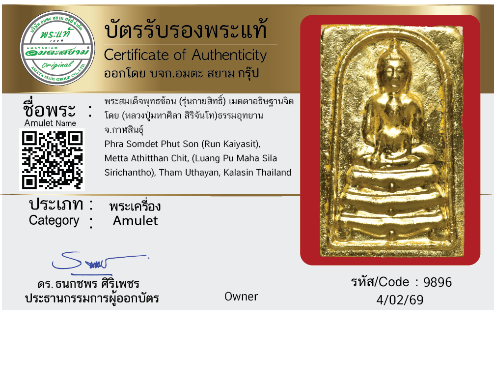 พระสมเด็จพุทธซ้อน (รุ่นกายสิทธิ์) เมตตาอธิษฐานจิต โดย (หลวงปู่มหาศิลา สิริจันโท) ธรรมอุทยาน จ.กาฬสินธุ์