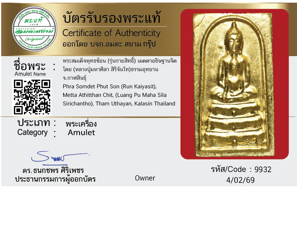 พระสมเด็จพุทธซ้อน (รุ่นกายสิทธิ์) เมตตาอธิษฐานจิต โดย (หลวงปู่มหาศิลา สิริจันโท) ธรรมอุทยาน จ.กาฬสินธุ์
