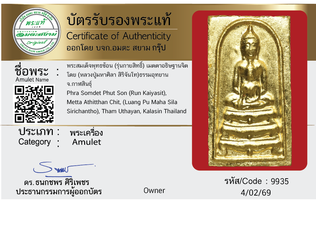 พระสมเด็จพุทธซ้อน (รุ่นกายสิทธิ์) เมตตาอธิษฐานจิต โดย (หลวงปู่มหาศิลา สิริจันโท) ธรรมอุทยาน จ.กาฬสินธุ์