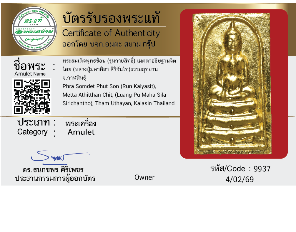 พระสมเด็จพุทธซ้อน (รุ่นกายสิทธิ์) เมตตาอธิษฐานจิต โดย (หลวงปู่มหาศิลา สิริจันโท) ธรรมอุทยาน จ.กาฬสินธุ์