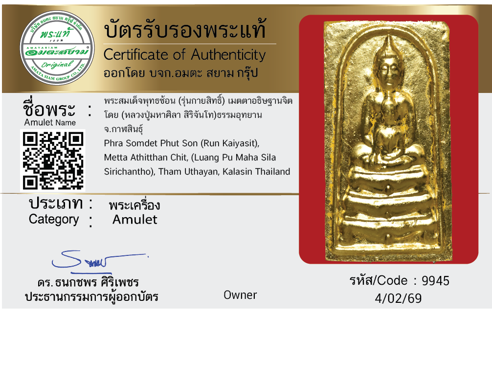 พระสมเด็จพุทธซ้อน (รุ่นกายสิทธิ์) เมตตาอธิษฐานจิต โดย (หลวงปู่มหาศิลา สิริจันโท) ธรรมอุทยาน จ.กาฬสินธุ์