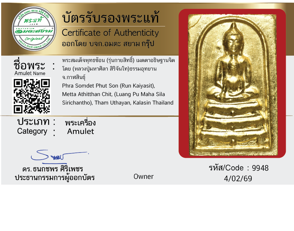 พระสมเด็จพุทธซ้อน (รุ่นกายสิทธิ์) เมตตาอธิษฐานจิต โดย (หลวงปู่มหาศิลา สิริจันโท) ธรรมอุทยาน จ.กาฬสินธุ์