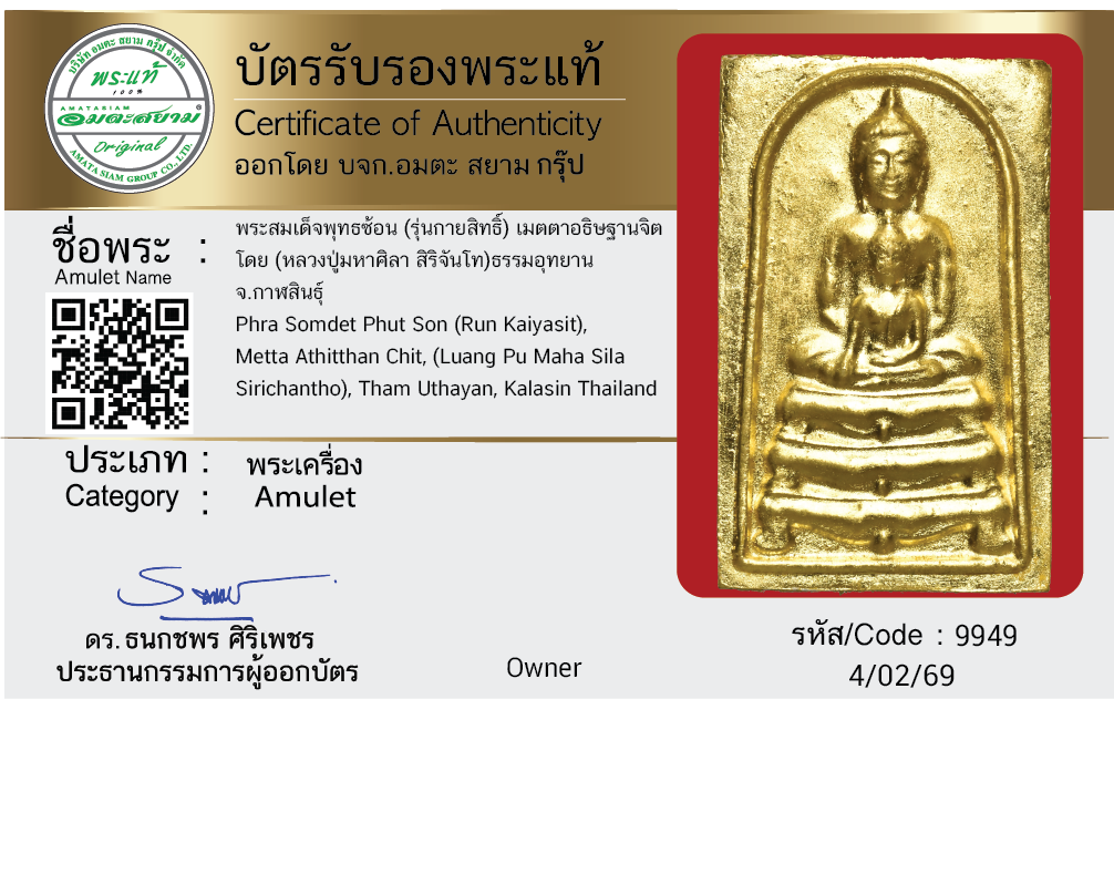 พระสมเด็จพุทธซ้อน (รุ่นกายสิทธิ์) เมตตาอธิษฐานจิต โดย (หลวงปู่มหาศิลา สิริจันโท) ธรรมอุทยาน จ.กาฬสินธุ์