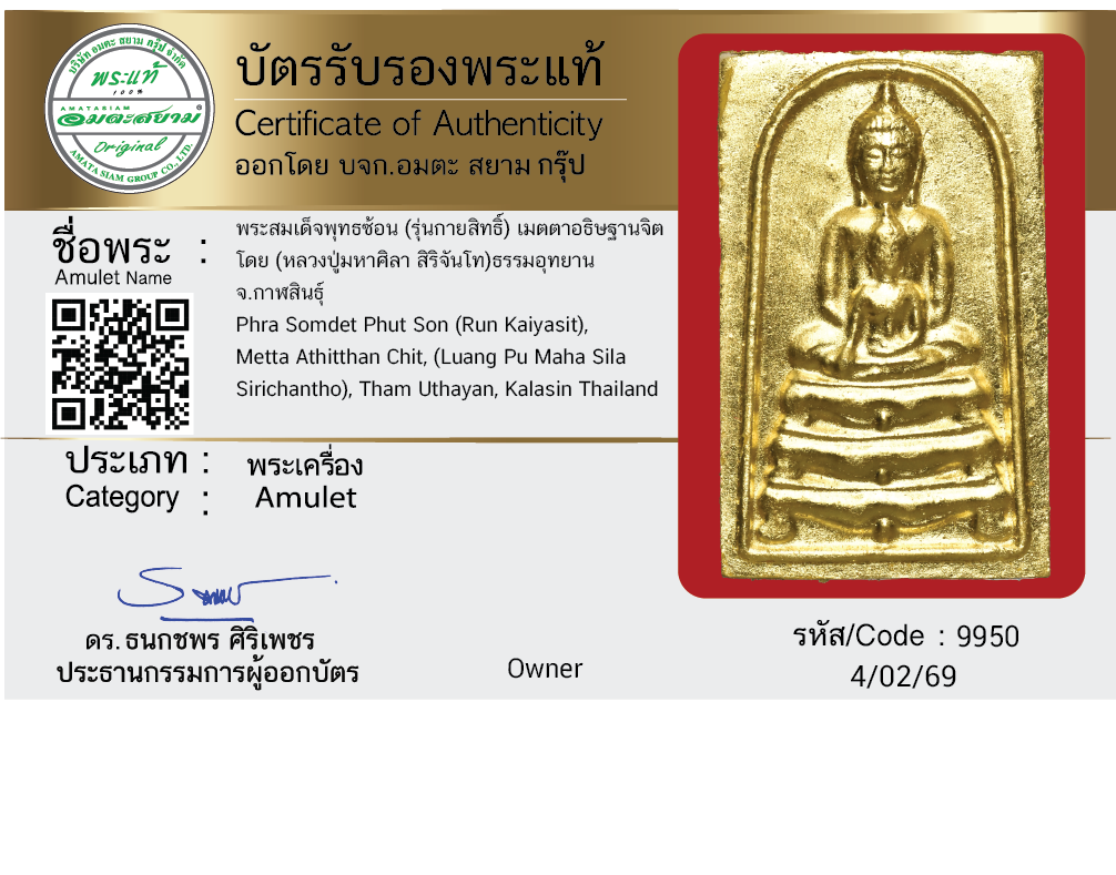 พระสมเด็จพุทธซ้อน (รุ่นกายสิทธิ์) เมตตาอธิษฐานจิต โดย (หลวงปู่มหาศิลา สิริจันโท) ธรรมอุทยาน จ.กาฬสินธุ์