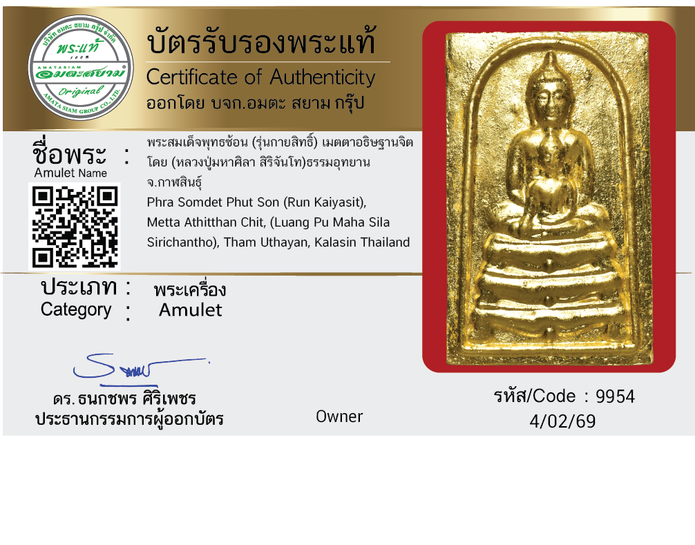 พระสมเด็จพุทธซ้อน (รุ่นกายสิทธิ์) เมตตาอธิษฐานจิต โดย (หลวงปู่มหาศิลา สิริจันโท) ธรรมอุทยาน จ.กาฬสินธุ์