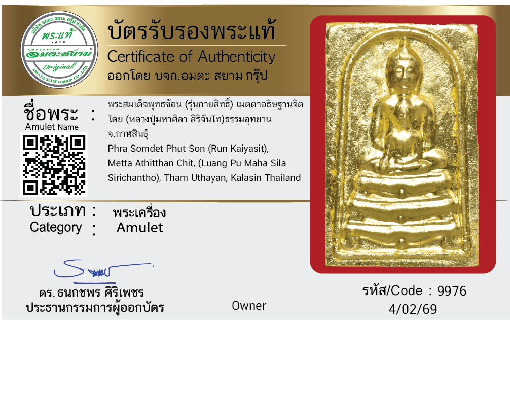 พระสมเด็จพุทธซ้อน (รุ่นกายสิทธิ์) เมตตาอธิษฐานจิต โดย (หลวงปู่มหาศิลา สิริจันโท) ธรรมอุทยาน จ.กาฬสินธุ์