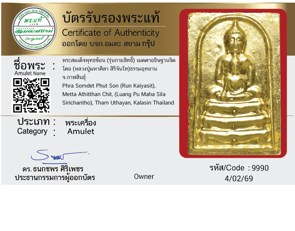 พระสมเด็จพุทธซ้อน (รุ่นกายสิทธิ์) เมตตาอธิษฐานจิต โดย (หลวงปู่มหาศิลา สิริจันโท) ธรรมอุทยาน จ.กาฬสินธุ์