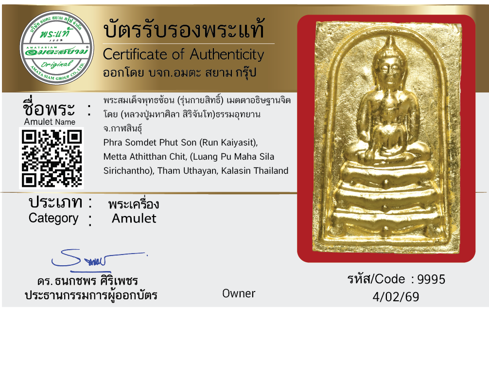พระสมเด็จพุทธซ้อน (รุ่นกายสิทธิ์) เมตตาอธิษฐานจิต โดย (หลวงปู่มหาศิลา สิริจันโท) ธรรมอุทยาน จ.กาฬสินธุ์