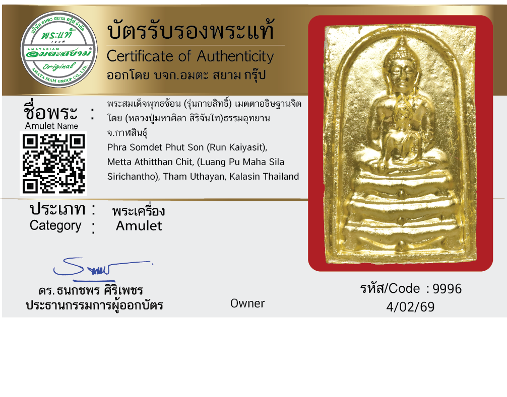 พระสมเด็จพุทธซ้อน (รุ่นกายสิทธิ์) เมตตาอธิษฐานจิต โดย (หลวงปู่มหาศิลา สิริจันโท) ธรรมอุทยาน จ.กาฬสินธุ์