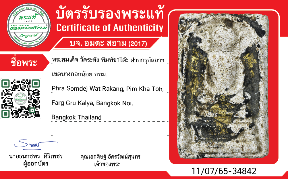 The amulet was tested by CaCo3 TesTer Calcite that it is the original Phra Somdej which the age is at least 150 years.