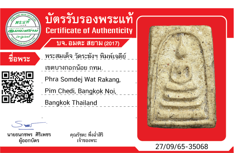 ระบบบันทึกใบรับรองพระแท้ 35068