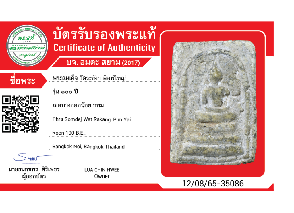 ระบบบันทึกใบรับรองพระแท้ 35086