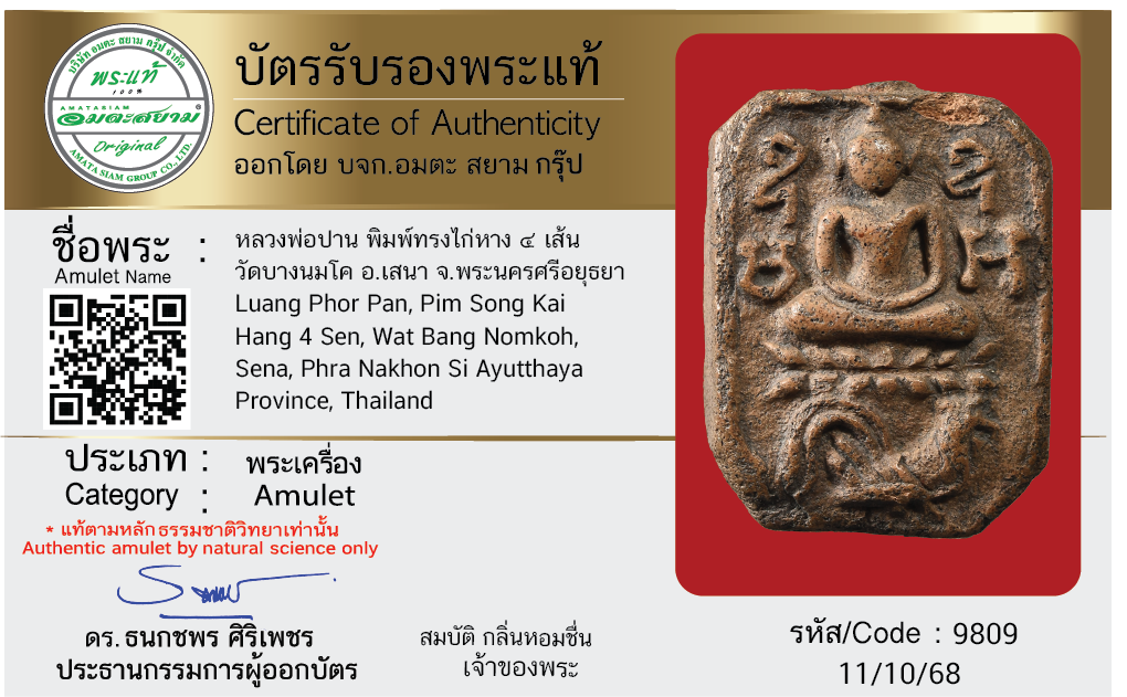 หลวงพ่อปาน พิมพ์ทรงไก่หาง ๔ เส้น วัดบางนมโค อ.เสนา จ.พระนครศรีอยุธยา