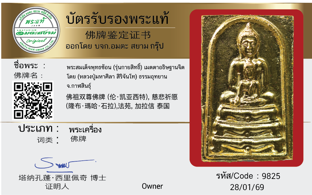 พระสมเด็จพุทธซ้อน (รุ่นกายสิทธิ์) เมตตาอธิษฐานจิต โดย (หลวงปู่มหาศิลา สิริจันโท) ธรรมอุทยาน จ.กาฬสินธุ์