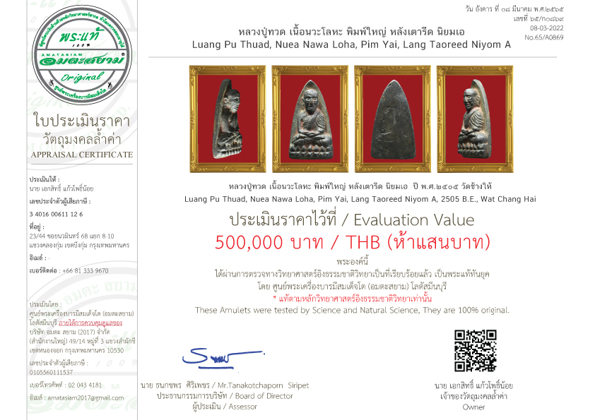 เจ้าของวัตถุมงคลล้ำค่าองค์นี้/Owner of this precious sacred object