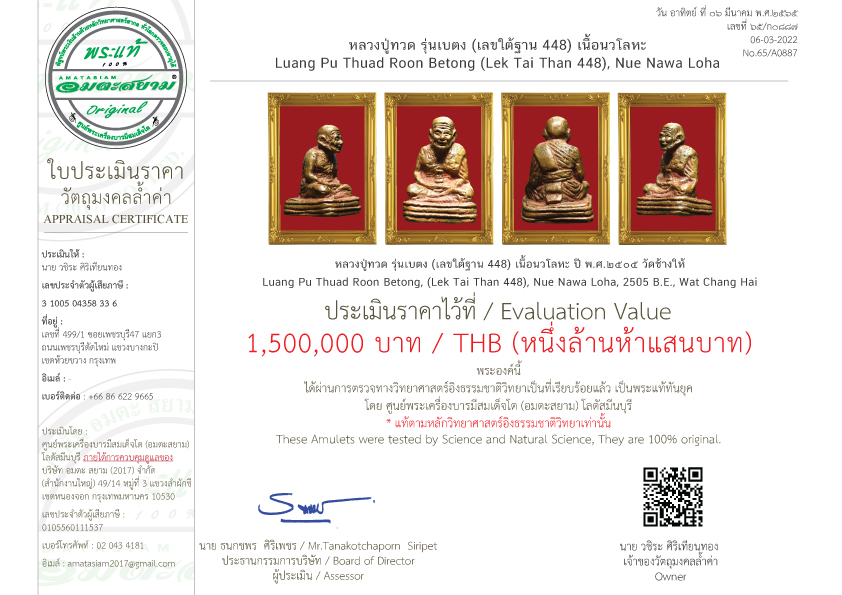 Luang Pu Thuad Roon Betong, (Lek Tai Than 448), Nue Nawa Loha, 2505 B.E., Wat Chang Hai