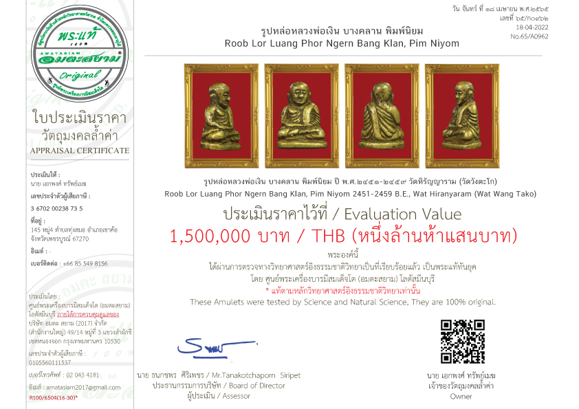 เจ้าของวัตถุมงคลล้ำค่าองค์นี้/Owner of this precious sacred object
