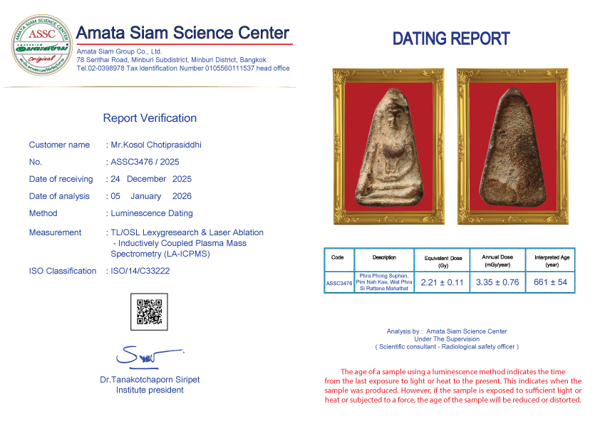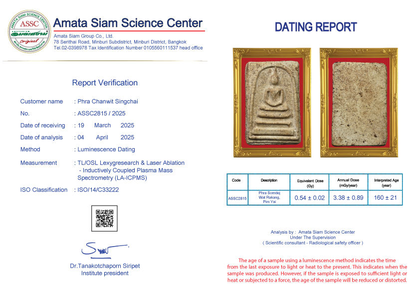 In conclusion, however, scientific procedure still can’t tell the pureness of amulets but can tell how long they have been constructed. However Amata Siam is an expert of natural science and combining scientific procedure will soon tell the exact age of the antiques.
