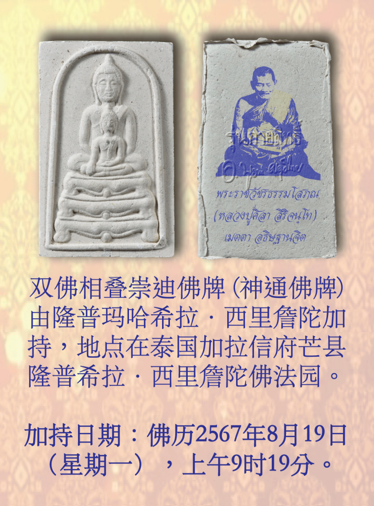 双佛相叠崇迪佛牌 (神通佛牌) 由隆普玛哈希拉·西里詹陀加持
