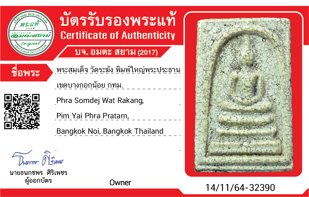 พระสมเด็จ วัดระฆังฯ พิมพ์ใหญ่ ยุคปลาย เขตบางกอกน้อย กทม.