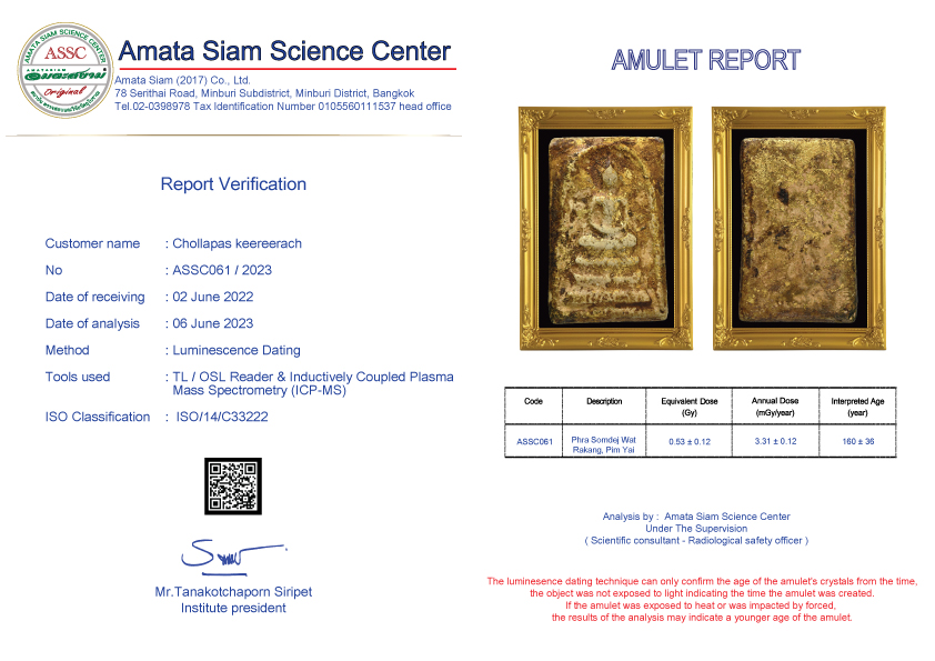 การคำนวณอายุพระเครื่อง (พระเครื่องจัดเป็นโบราณวัตถุ) จำเป็นต้องทราบปริมาณรังสีในตัวพระเครื่องและปริมาณรังสีของสิ่งแวดล้อม โดยทั่วไปวัสดุธรรมชาติที่ให้สารรังสีออกมาจากธาตุยูเรเนียม ทอเรียม และโพแทสเชียมเป็นหลัก อมตะสยามจึงได้นำเครื่องมือ ICP-MS (Inductively coupled plasma mass spectrometry)