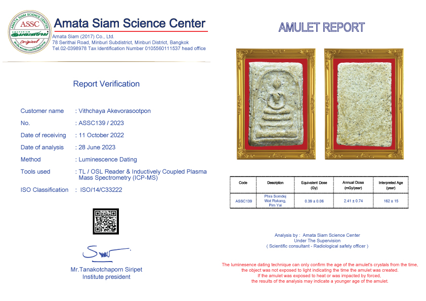 In conclusion, however, scientific procedure still can’t tell the pureness of amulets but can tell how long they have been constructed. However Amata Siam is an expert of natural science and combining scientific procedure will soon tell the exact age of the antiques.