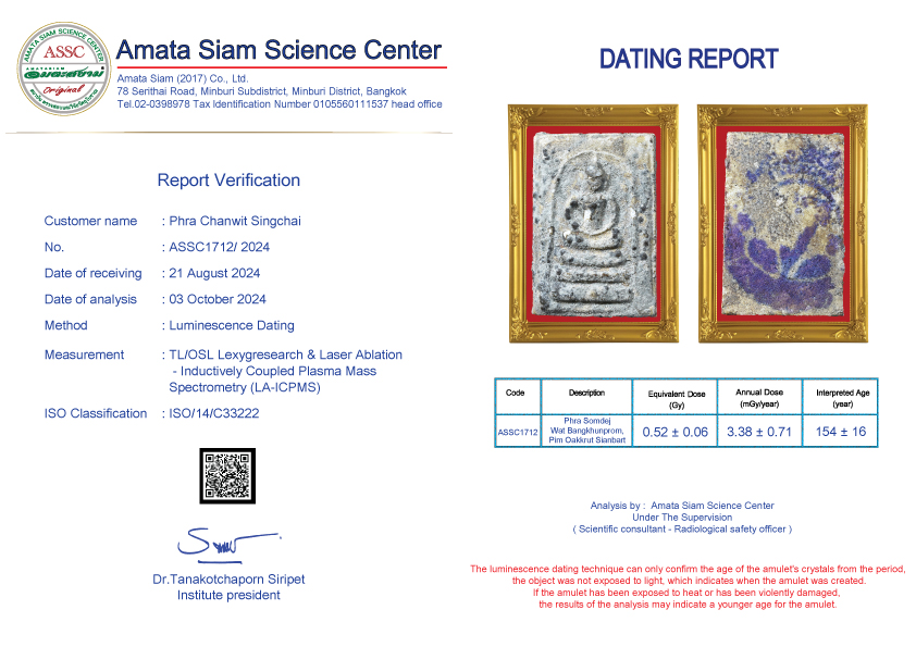 In conclusion, however, scientific procedure still can’t tell the pureness of amulets but can tell how long they have been constructed. However Amata Siam is an expert of natural science and combining scientific procedure will soon tell the exact age of the antiques.