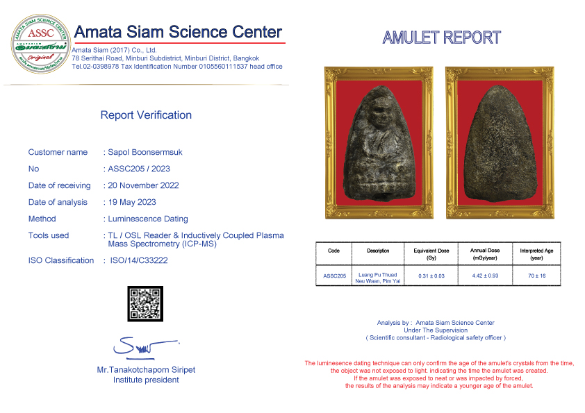 In conclusion, however, scientific procedure still can’t tell the pureness of amulets but can tell how long they have been constructed. However Amata Siam is an expert of natural science and combining scientific procedure will soon tell the exact age of the antiques.