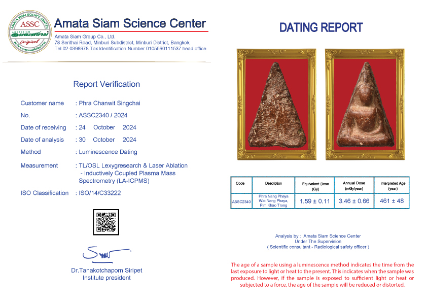 In conclusion, however, scientific procedure still can’t tell the pureness of amulets but can tell how long they have been constructed. However Amata Siam is an expert of natural science and combining scientific procedure will soon tell the exact age of the antiques.
