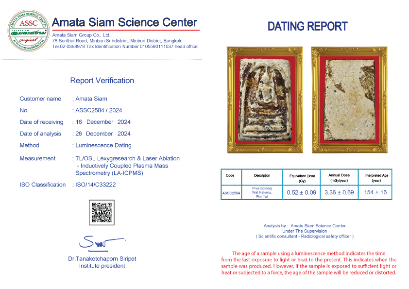 In conclusion, however, scientific procedure still can’t tell the pureness of amulets but can tell how long they have been constructed. However Amata Siam is an expert of natural science and combining scientific procedure will soon tell the exact age of the antiques.