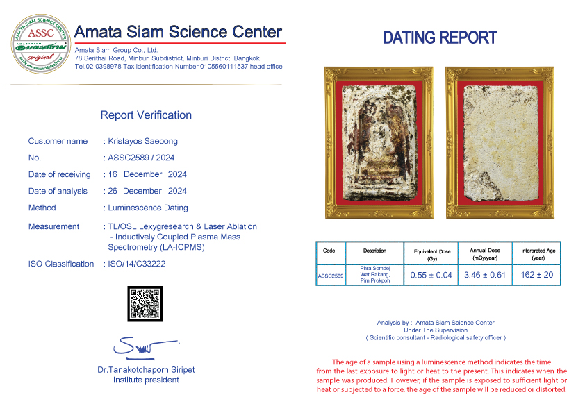 然而,科学过程仍然无法辨别护身符的真伪。但可以看出那个特定的护身符。建了多久? Amata Siam也有自然科学方面的专家,在将科学过程与自然科学相结合时崩溃、收缩、枯萎。因此能够准确分辨新旧。