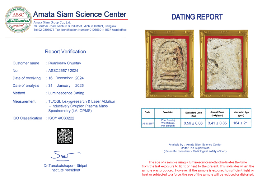 In conclusion, however, scientific procedure still can’t tell the pureness of amulets but can tell how long they have been constructed. However Amata Siam is an expert of natural science and combining scientific procedure will soon tell the exact age of the antiques.