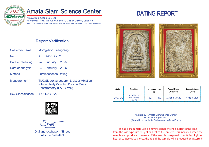 In conclusion, however, scientific procedure still can’t tell the pureness of amulets but can tell how long they have been constructed. However Amata Siam is an expert of natural science and combining scientific procedure will soon tell the exact age of the antiques.
