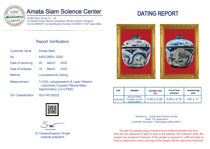 In conclusion, however, scientific procedure still can’t tell the pureness of amulets but can tell how long they have been constructed. However Amata Siam is an expert of natural science and combining scientific procedure will soon tell the exact age of the antiques.