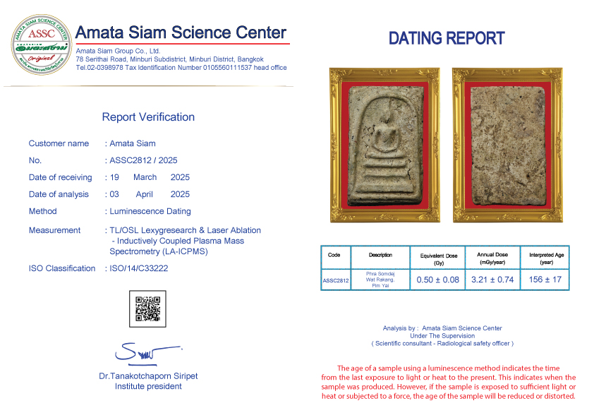 In conclusion, however, scientific procedure still can’t tell the pureness of amulets but can tell how long they have been constructed. However Amata Siam is an expert of natural science and combining scientific procedure will soon tell the exact age of the antiques.