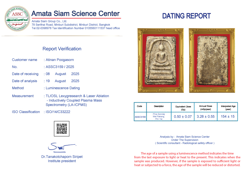 In conclusion, however, scientific procedure still can’t tell the pureness of amulets but can tell how long they have been constructed. However Amata Siam is an expert of natural science and combining scientific procedure will soon tell the exact age of the antiques.