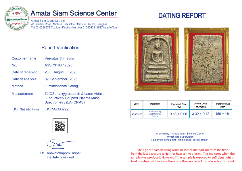 In conclusion, however, scientific procedure still can’t tell the pureness of amulets but can tell how long they have been constructed. However Amata Siam is an expert of natural science and combining scientific procedure will soon tell the exact age of the antiques.