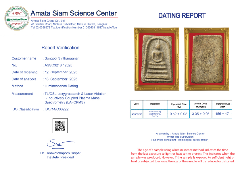 In conclusion, however, scientific procedure still can’t tell the pureness of amulets but can tell how long they have been constructed. However Amata Siam is an expert of natural science and combining scientific procedure will soon tell the exact age of the antiques.