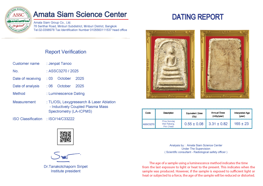 In conclusion, however, scientific procedure still can’t tell the pureness of amulets but can tell how long they have been constructed. However Amata Siam is an expert of natural science and combining scientific procedure will soon tell the exact age of the antiques.